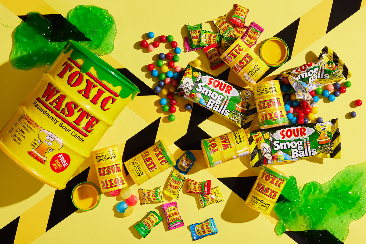 From American candymaker Candy Dynamics, Toxic Waste brings a range of delightfully sour products. The flagship Toxic Waste Drum is a plastic drum filled with 16 pieces of candy in Apple, Black Cherry, Watermelon, Lemon & Blue Raspberry.